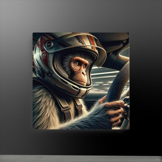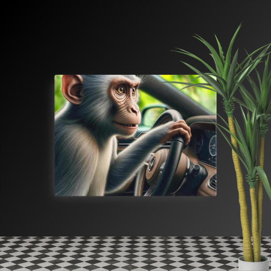 "Racing Whimsy: The Monkey at the Wheel" Canvas Art